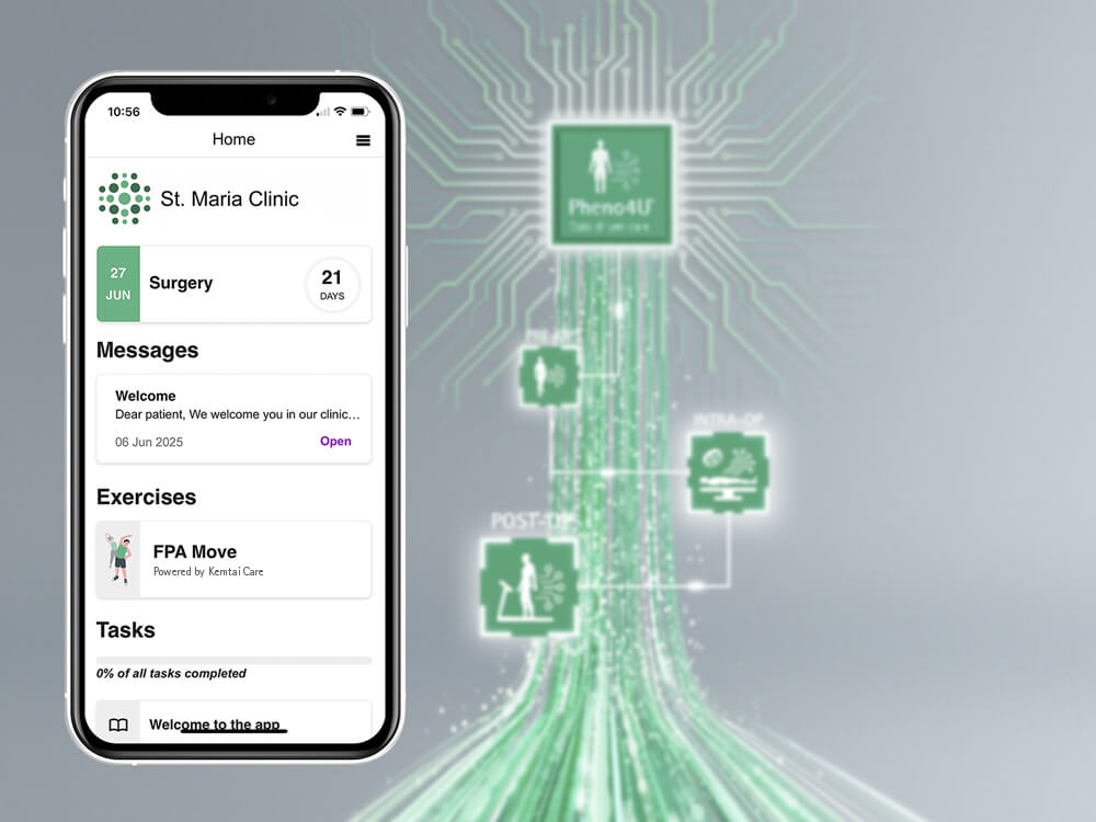 Learn moreThe ForPatientApp engages patients in their treatment journeys and empowers them with timely, curated and personalized information, including exercises tailored to their own specific pre-surgical and post-surgical routines. ForPatientApp simultaneously supports you with invaluable insights in real time regarding your patients‘ progress as well as by streamlining your critical workflows. As a patient-centric digital companion, ForPatientApp reinforces Pheno4U®‘s holistic approach to personalized care.